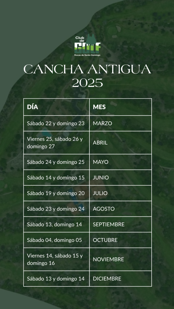 Estimados socios, los invitamos a conocer las fechas 2025 en que estará disponible para jugar la Cancha Antigua.